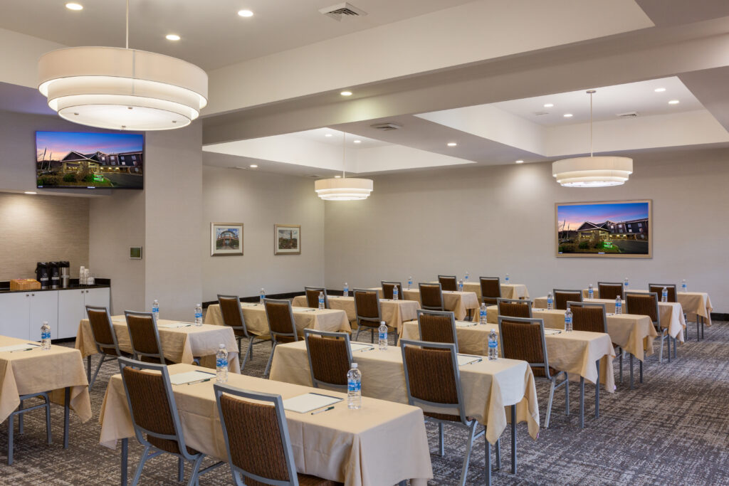 Yes, there’s 1,750 square feet of flexible space for meetings or gatherings, with discounted group rates available.